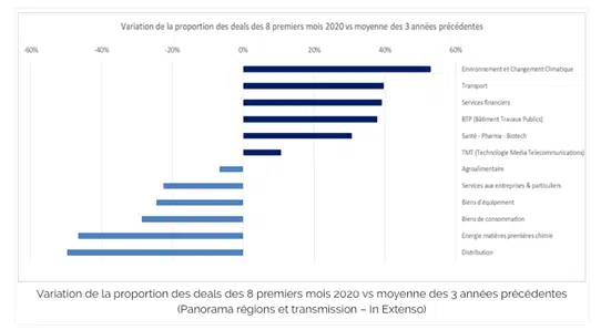 Il settore “ambiente e cambiamenti climatici” è oggi quello in cui si è registrato il maggior numero di fusioni e acquisizioni dal 2020, rispetto alla media dei 3 anni precedenti. Detto questo, queste transazioni comprendono tutti i tipi di operazioni, comprese le fusioni e le acquisizioni, una strategia di sviluppo che è stata relativamente poco considerata dai manager. Oggi anche la raccolta di fondi è in crescita, poiché i manager cercano di adattarsi alle decisioni governative che riguardano questo settore, come la legge del 10 febbraio 2020 sulla lotta agli sprechi e l’economia circolare.
